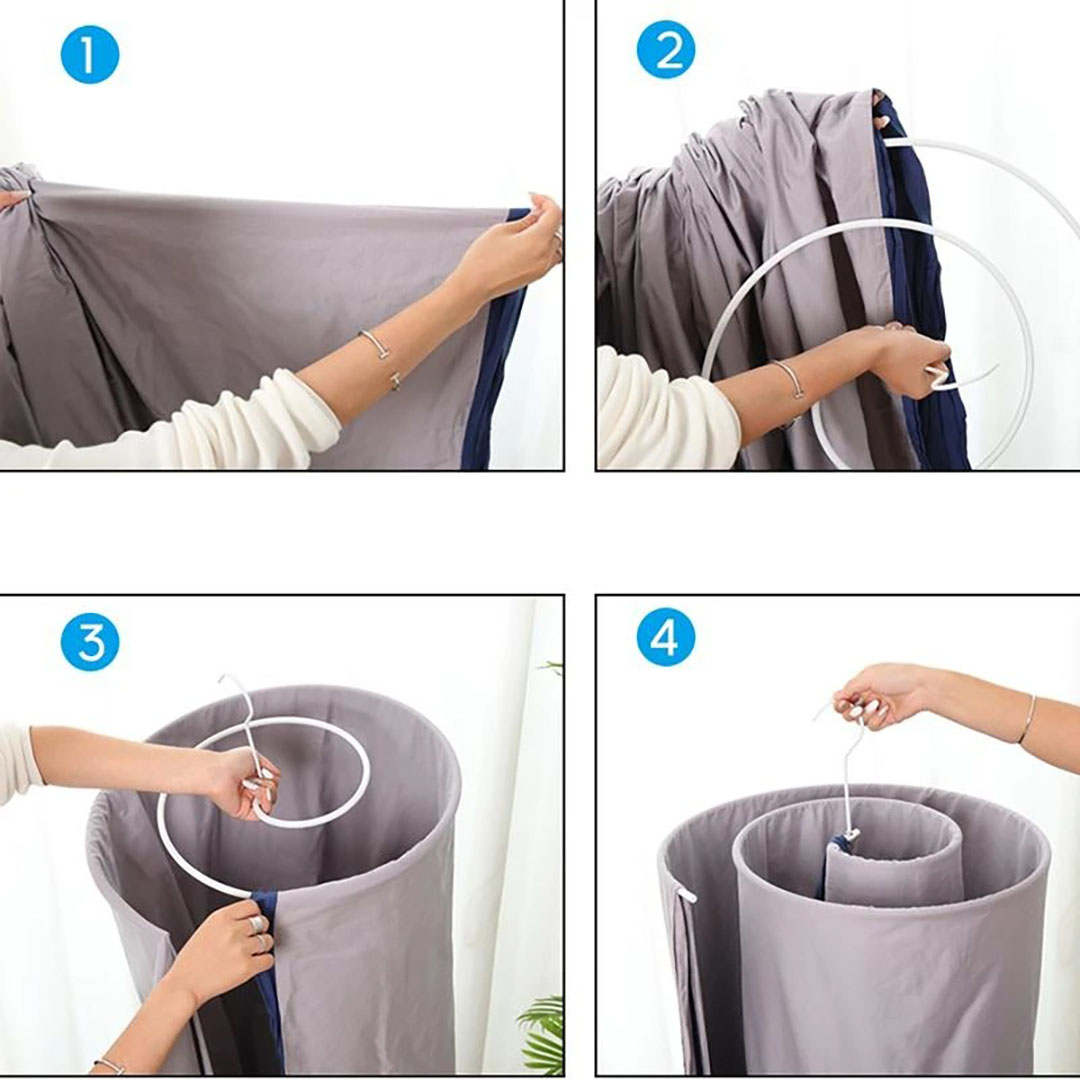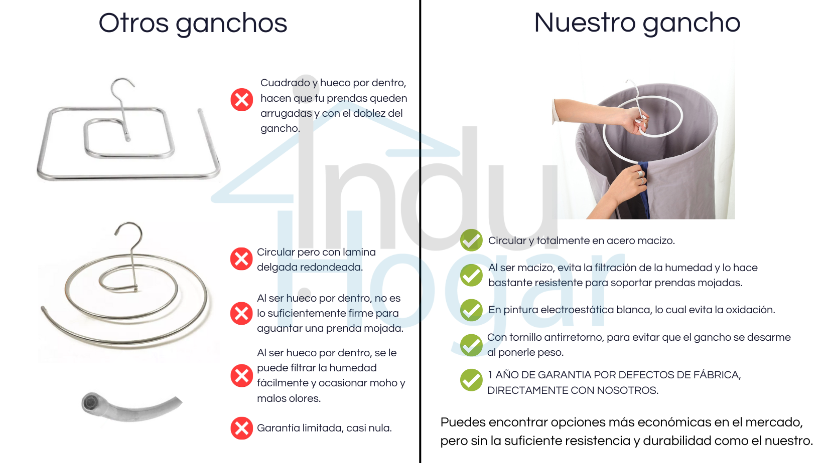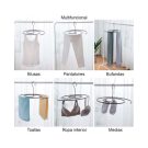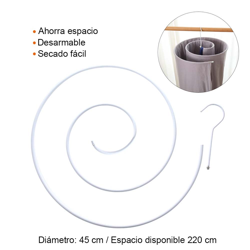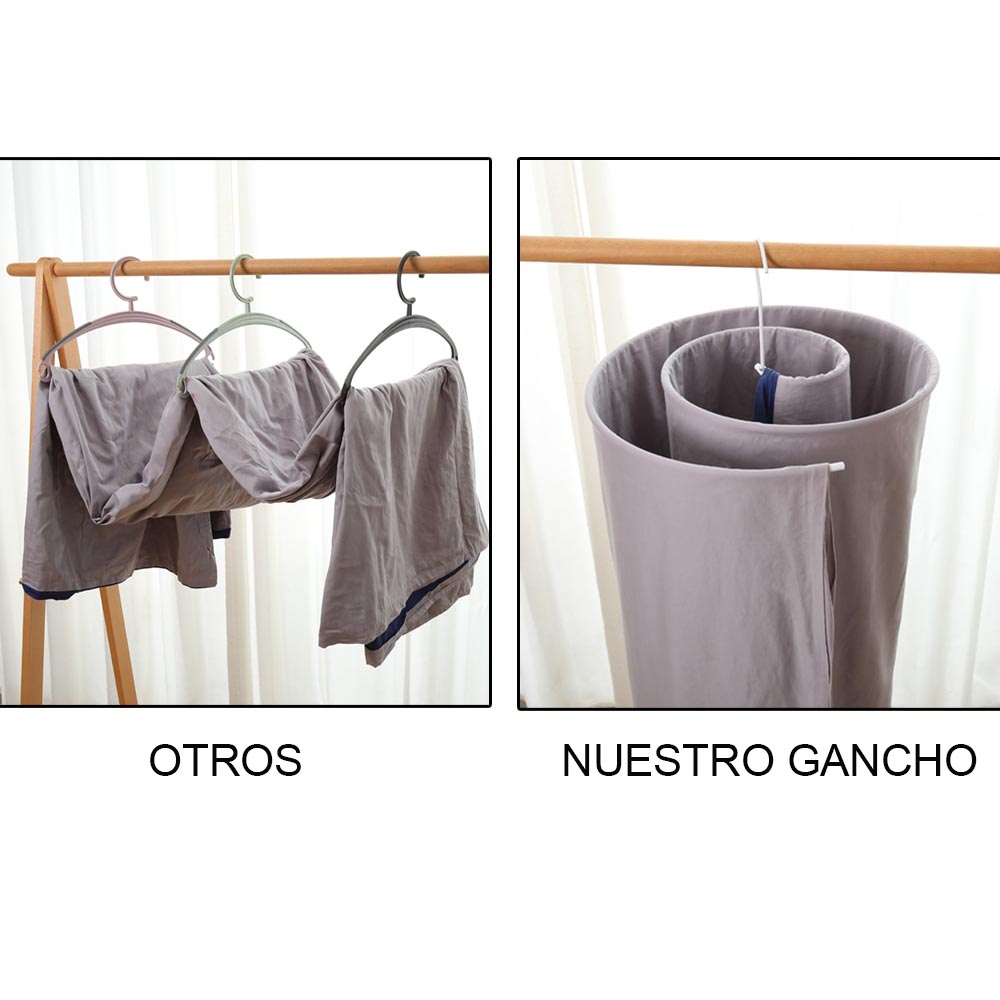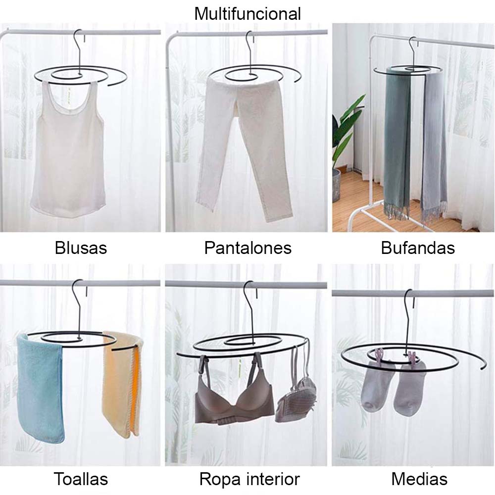 Práctico gancho giratorio en espiral que te permite ahorrar espacio en tu tendedero y así maximizar su uso.