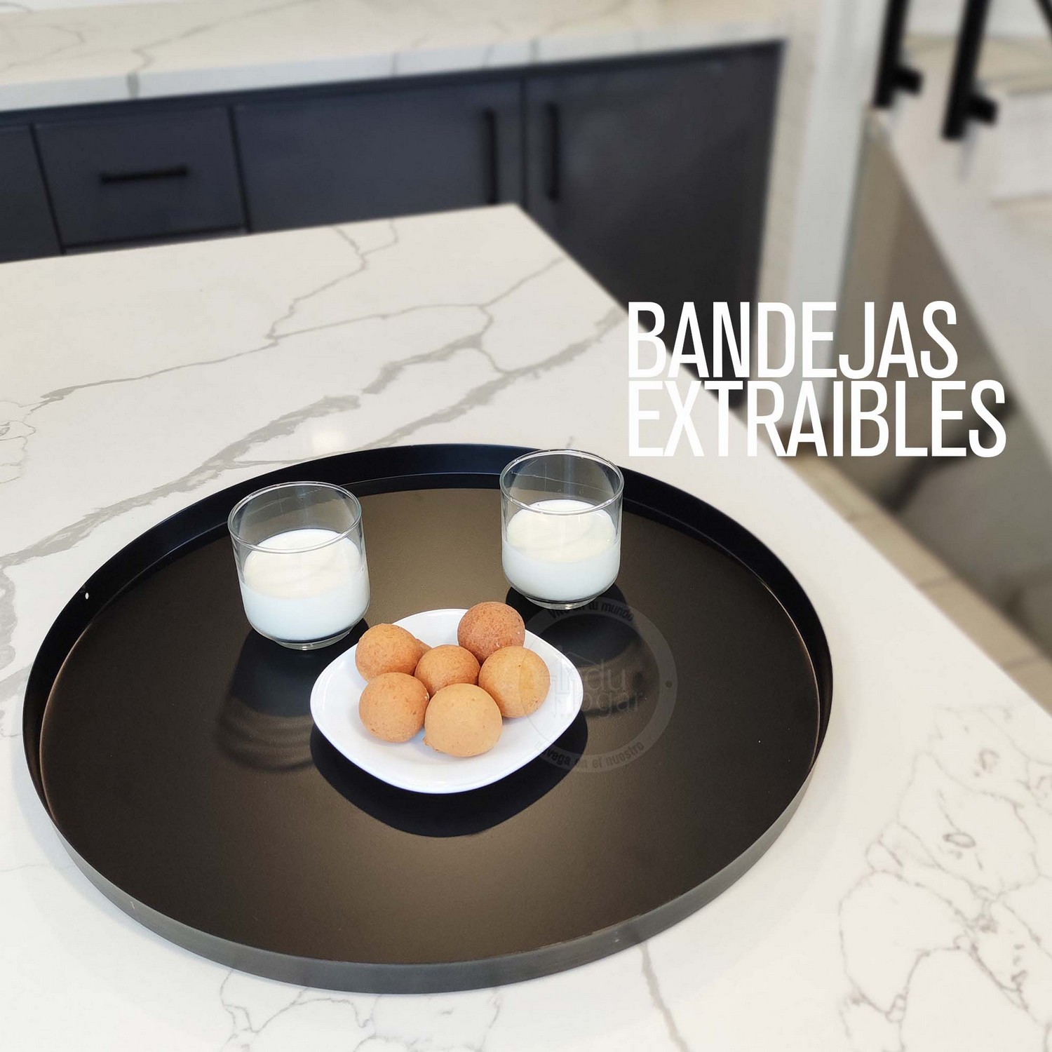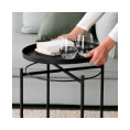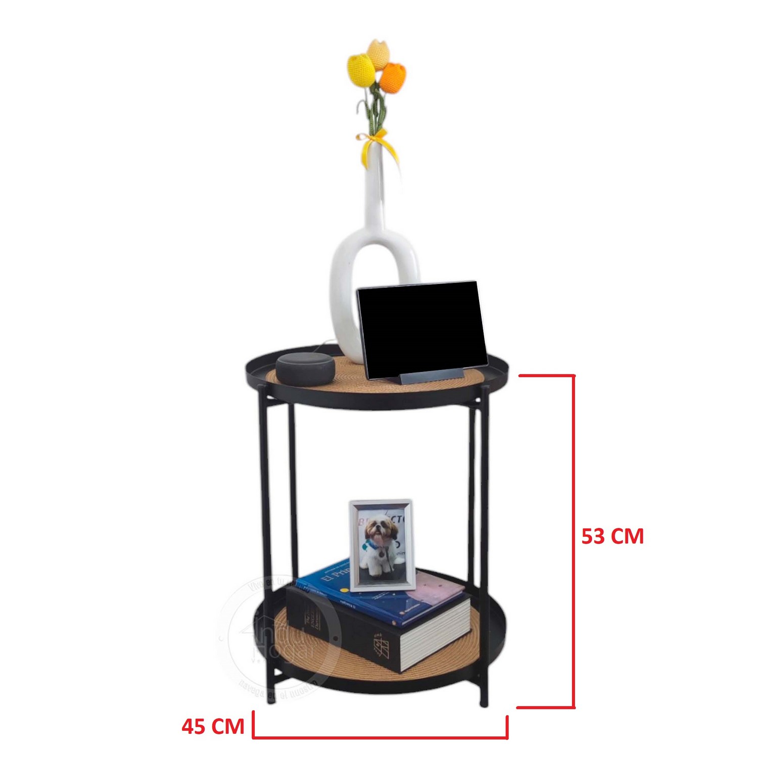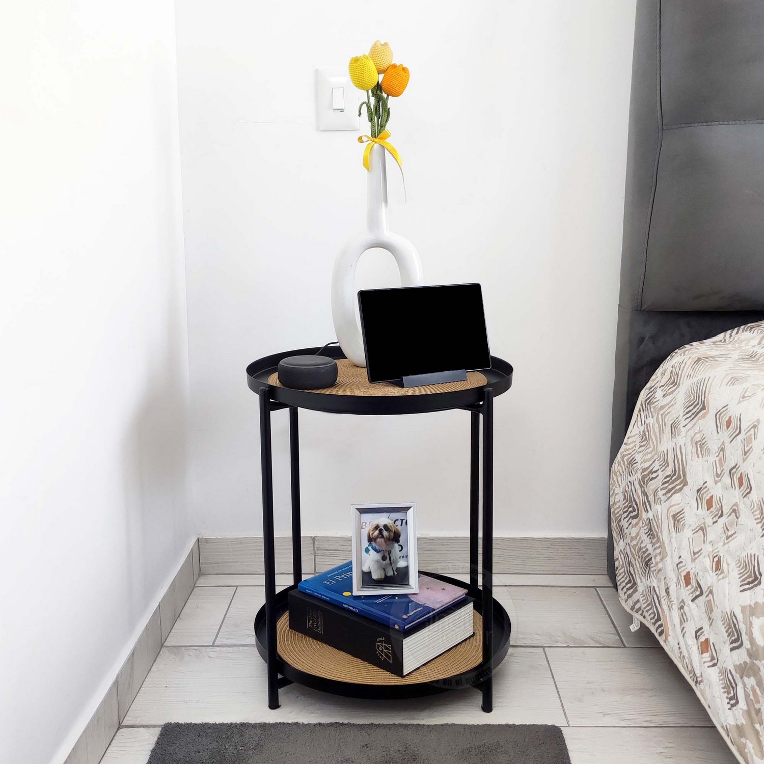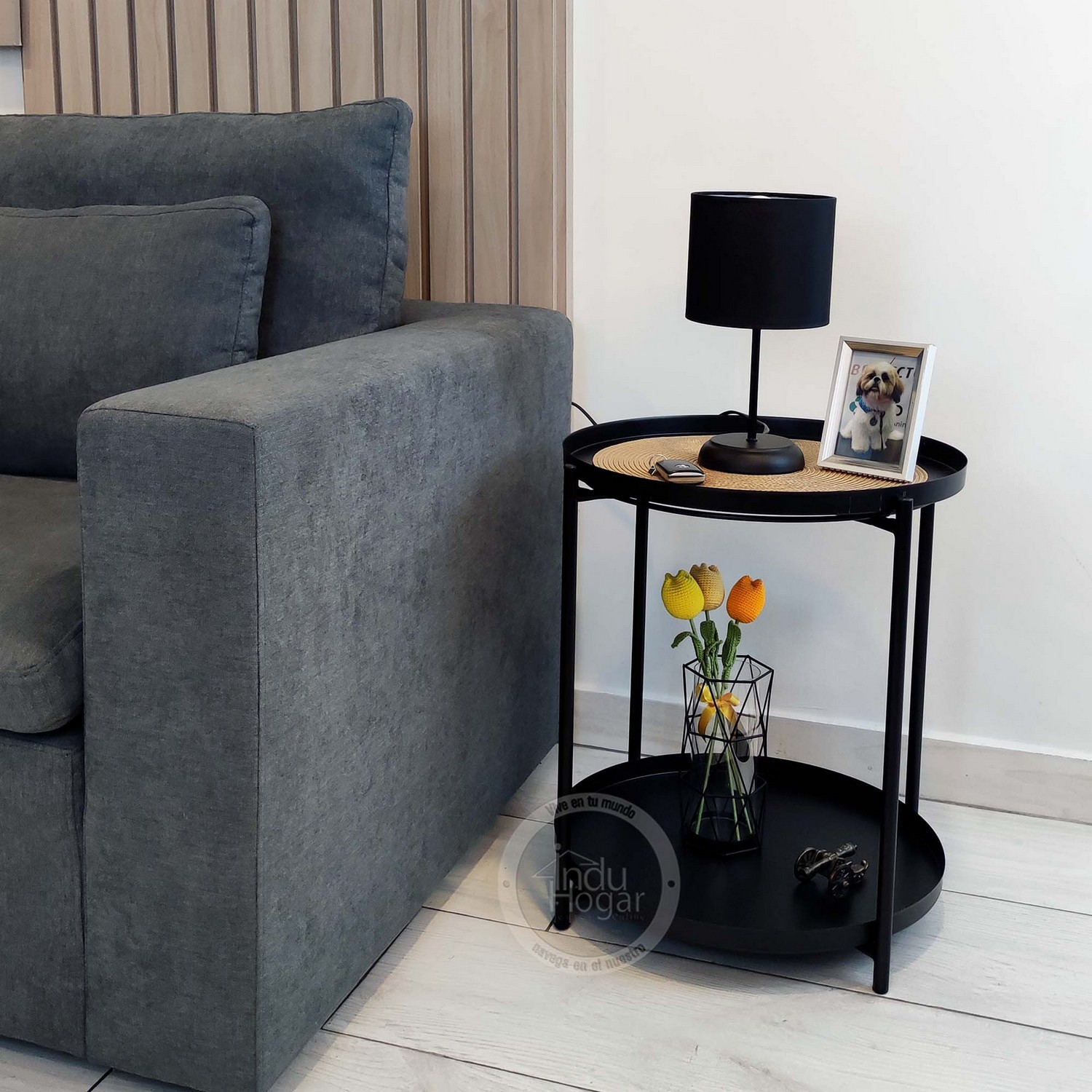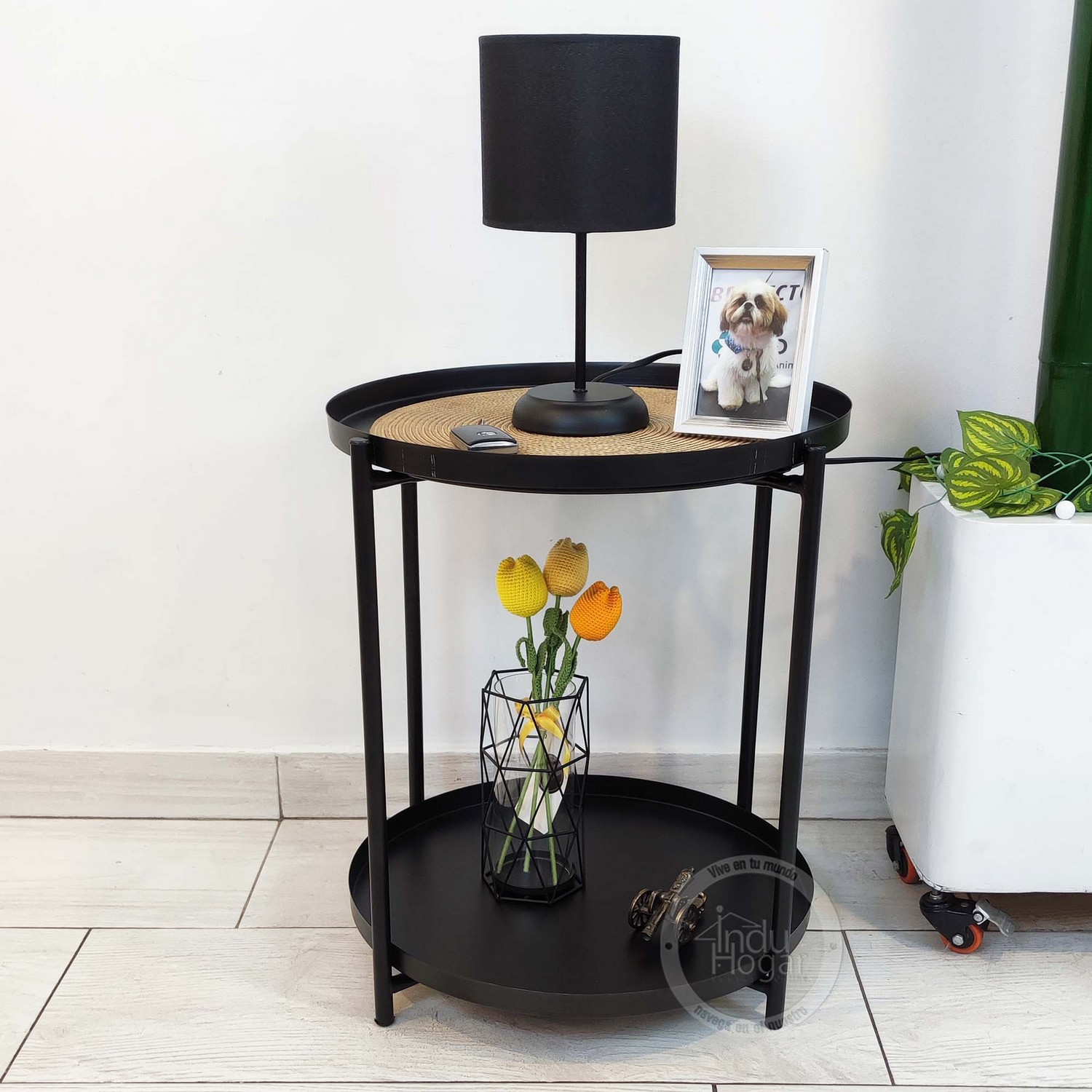 Practica mesa auxiliar con estructura en tubo y doble bandeja en lamina de acero con pintura electroestática negra. Gracias a que las bandejas son extraíbles y tiene bordes elevados, es segura para servir bebidas o alimentos. También la puedes usar como mesa de noche, mesa de centro o auxiliar para el hogar.