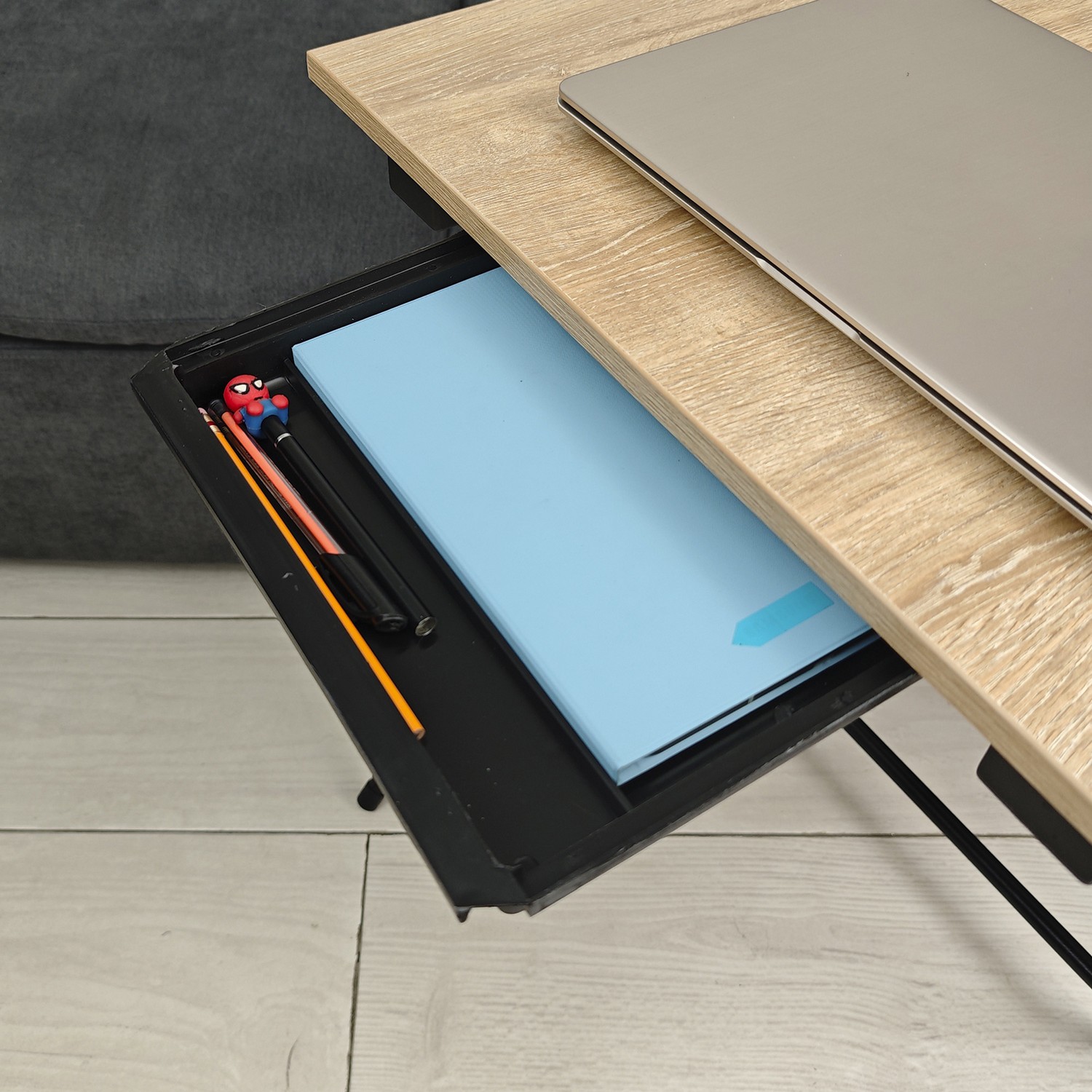 Si lo que buscas es una mesa linda y resistente, entonces nuestra mesa plegable es para ti. Cuenta con un cajón para guardar accesorios, la estructura es en acero con pintura electrostática negra y las patas cuentan con tapones antideslizantes. Su superficie es en madera forrada en formica, lo que le da un toque moderno a tus espacios. Se pliega fácilmente para mayor comodidad a la hora de guardarla.