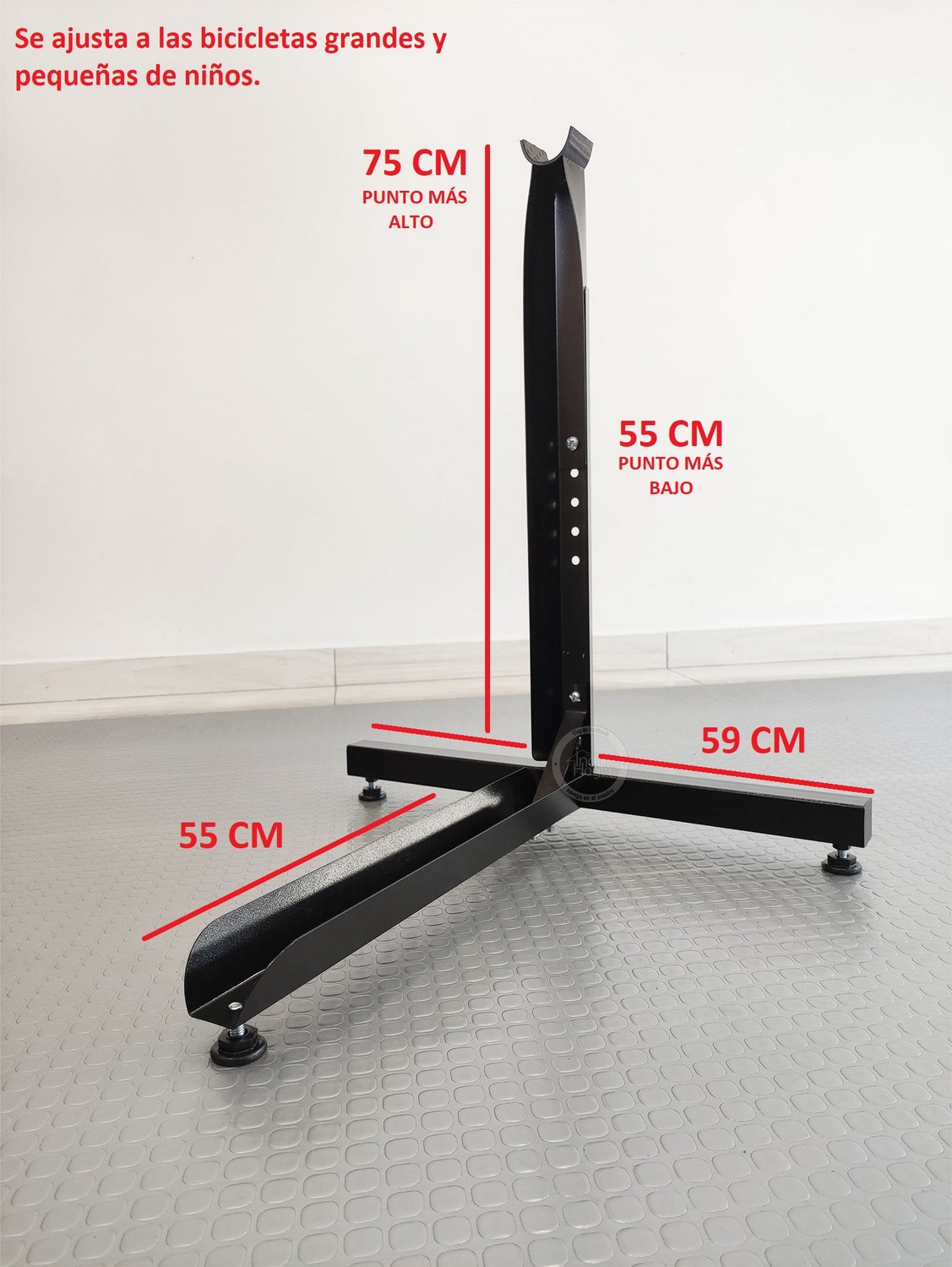 Nuestro soporte se adapta a todas las bicicletas, ya que puedes graduar la altura del soporte y elegir la que vaya mejor con tu bici. Funciona con mtb de 24", 26", 27.5" y 29" de todas las tallas. Para bicicletas de ruta creamos un adicional que se adapta a estas llantas más delgadas.