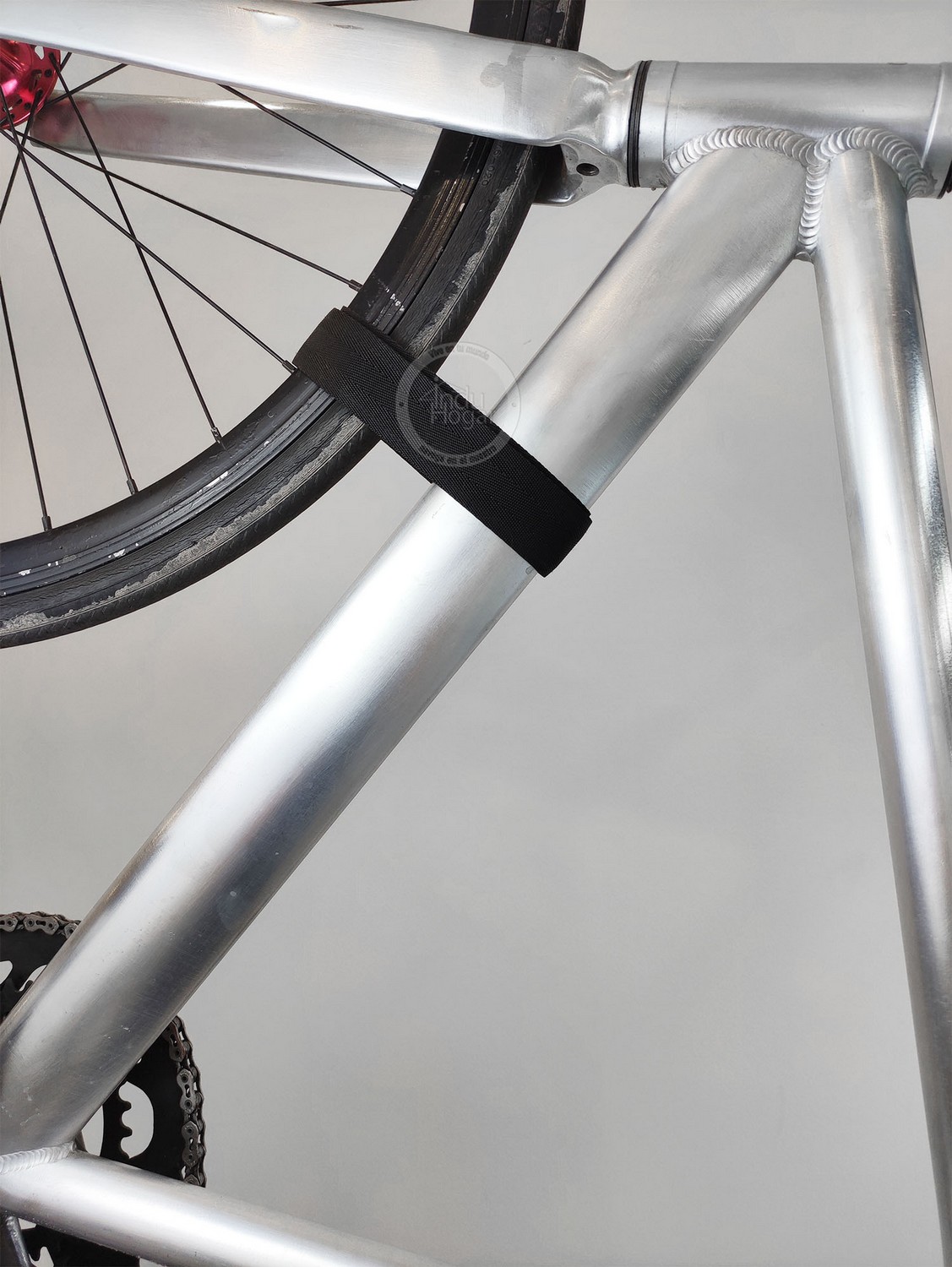 - Usa el sujetador para asegurar la llanta delantera y el marco de la bicicleta.