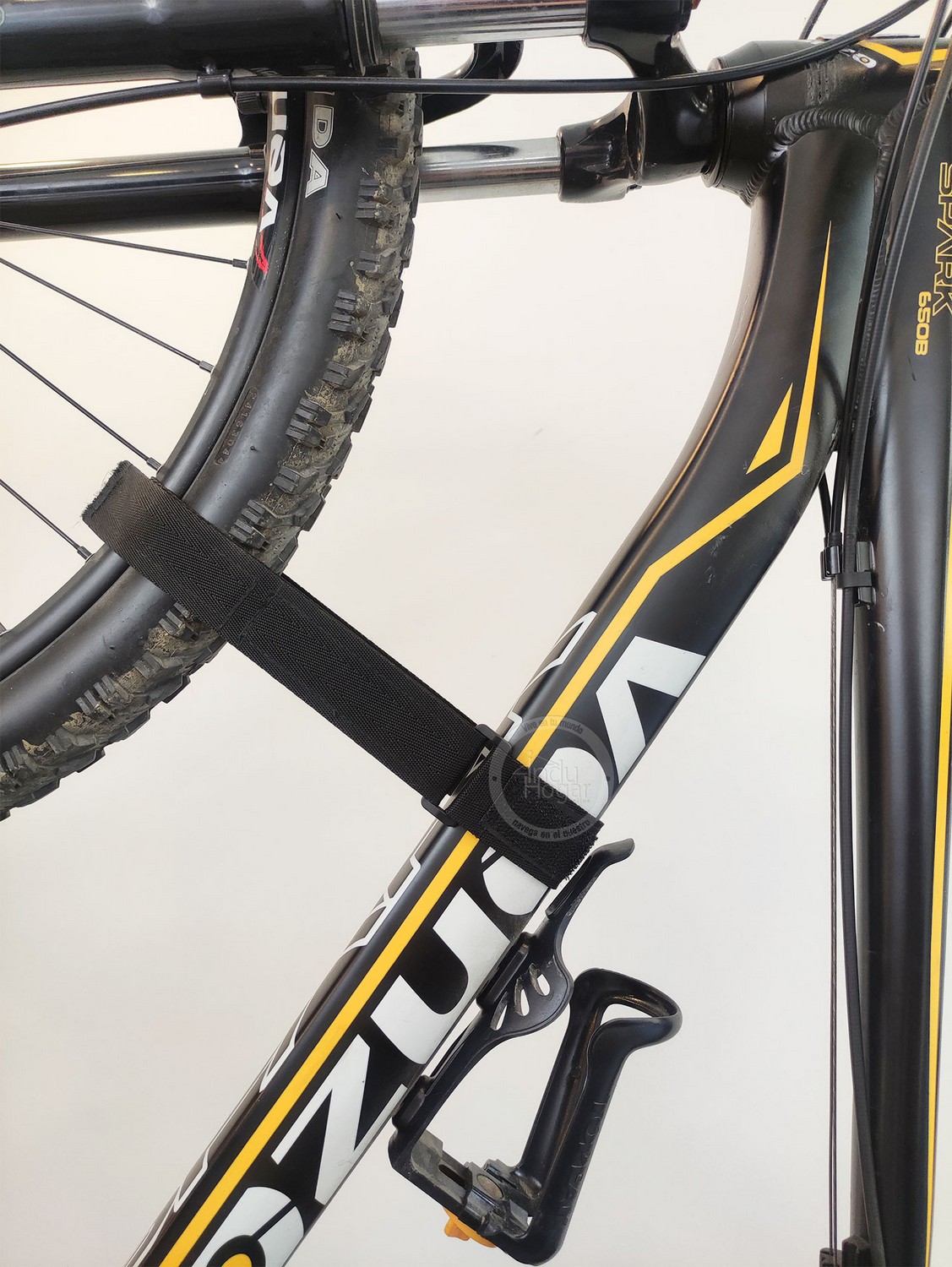 - Usa el sujetador para asegurar la llanta delantera y el marco de la bicicleta.