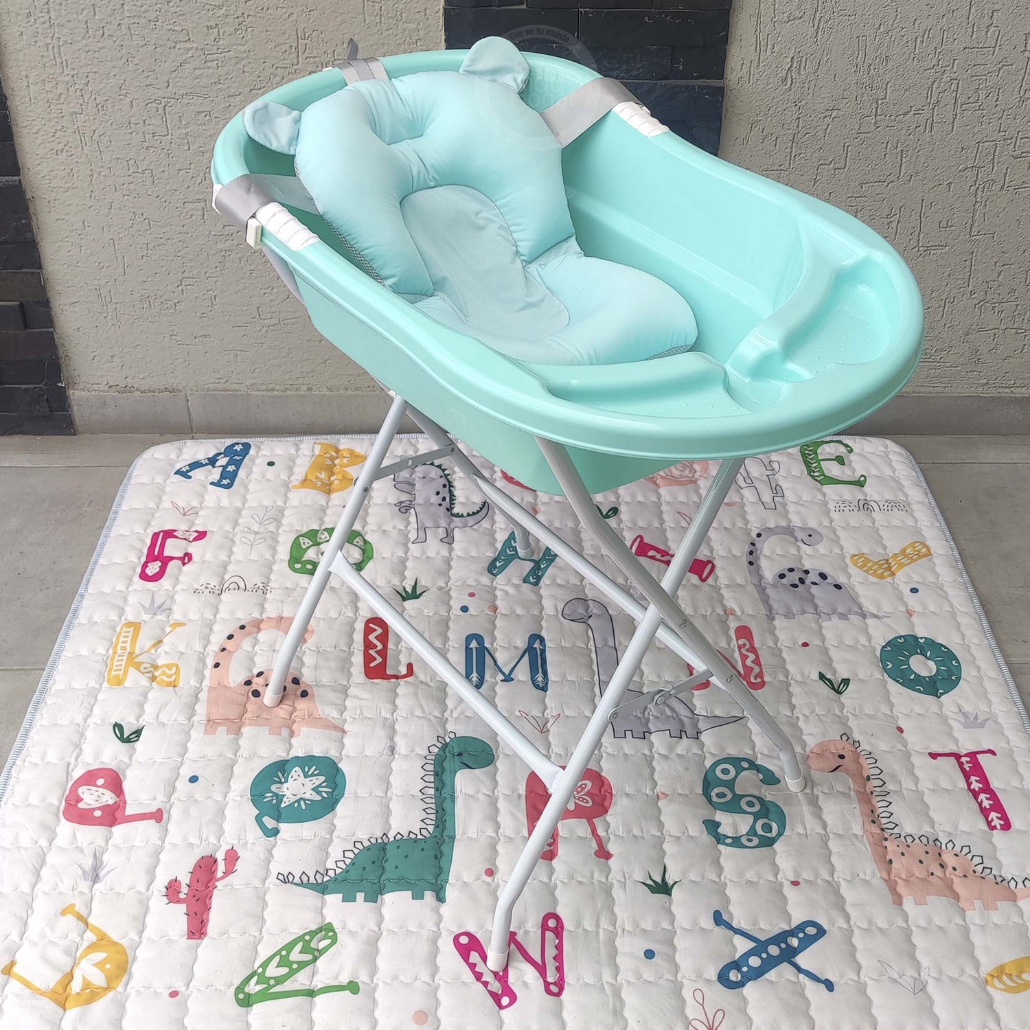 Disfruta cómodamente de la hora del baño con tu bebé, gracias a nuestra tina con soporte, el cual brinda la altura ideal para evitarte dolores de espalda. Además de tu comodidad, tu bebé también estará cómodo, ya que nuestro cojín ergonómico le brindará el confort adecuado.