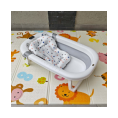 Práctica, segura y cómoda bañera con termómetro mas cojín apta para viajes ya que la puedes guardar de manera fácil, gracias a que es completamente plegable.