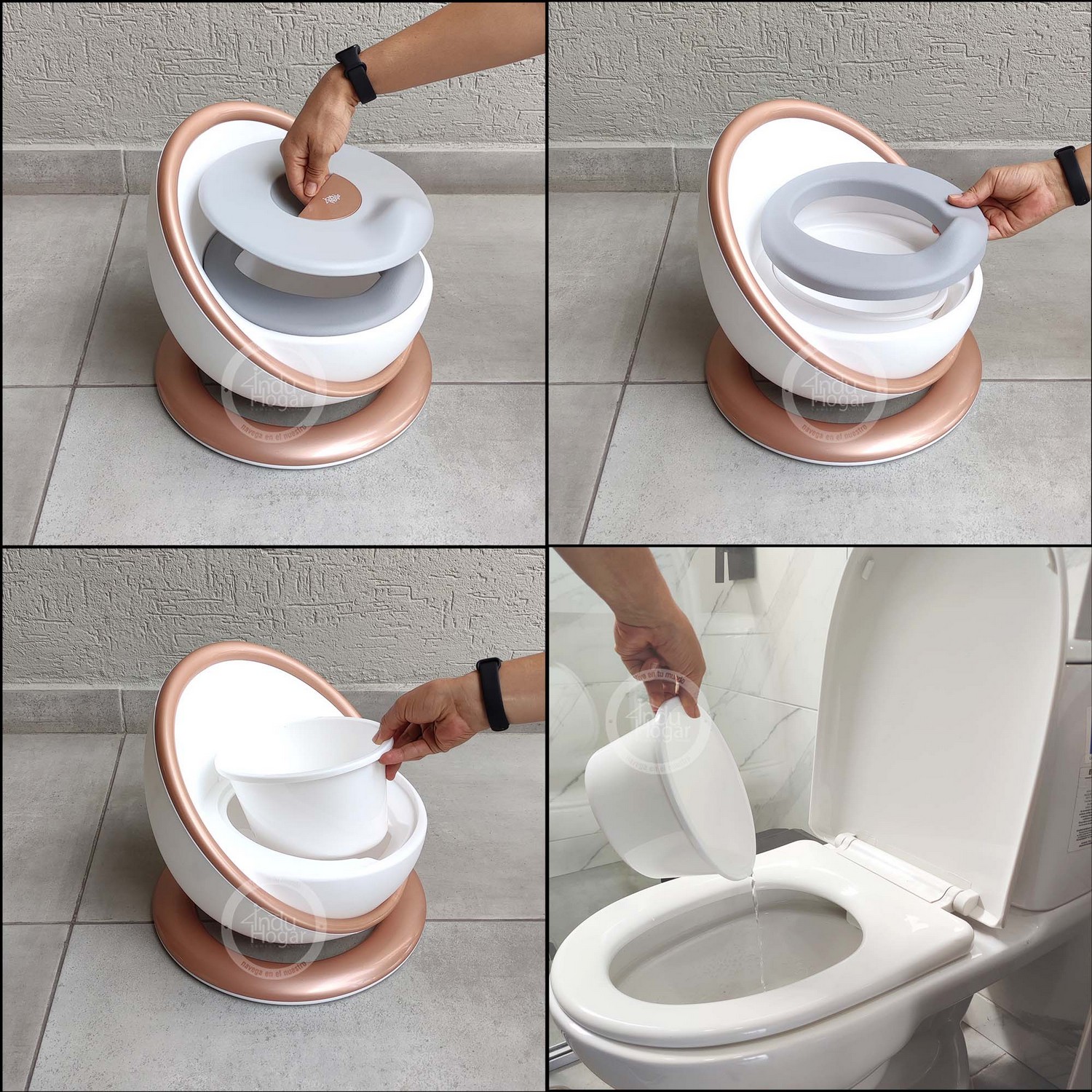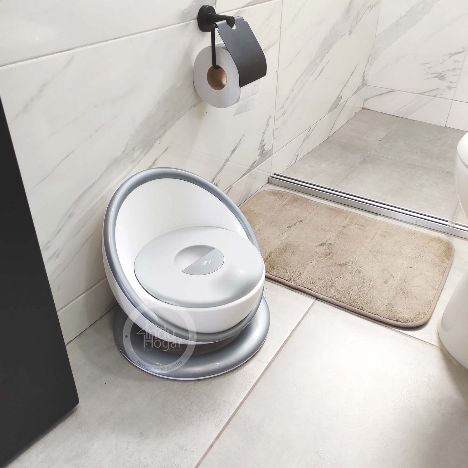 Vasenilla de entrenamiento para ir al baño con cojín acolchado, recipiente para los residuos y tapa. Es la herramienta ideal que ayudará a promover la independencia de tu hijo a la hora de ir al baño.
