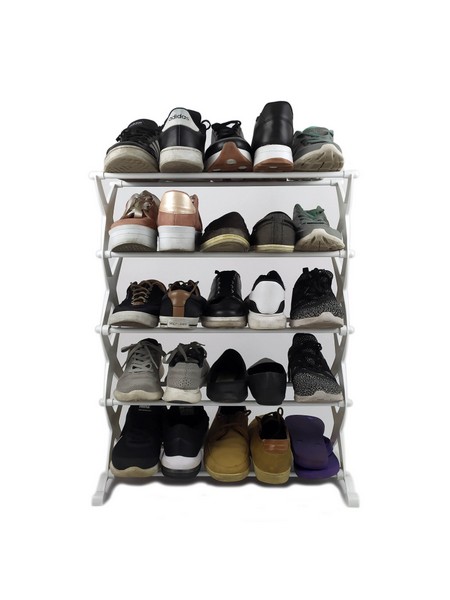 Practica zapatera desarmable de cinco entrepaños para 12 pares de zapatos. Diseñada para ser liviana, portable y desarmable.