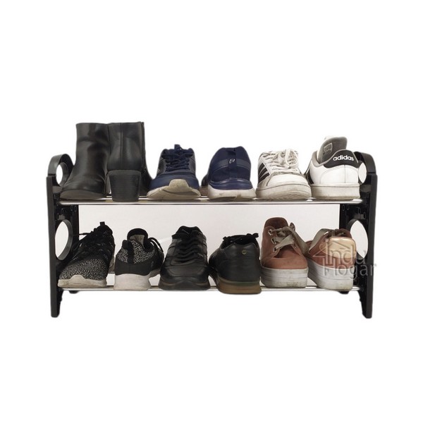 Práctica zapatera desarmable de dos entrepaños para 6 pares de zapatos. Diseñada para ser liviana, portable y desarmable.